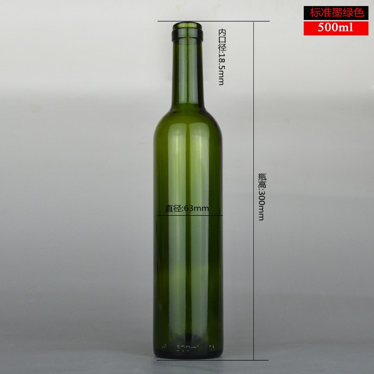 500ml 標準墨綠色紅酒瓶原色玻璃瓶
