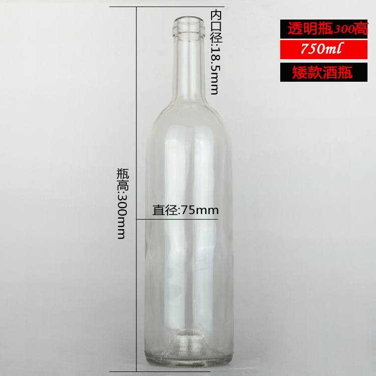 750ml 透明矮款紅酒瓶葡萄酒玻璃瓶
