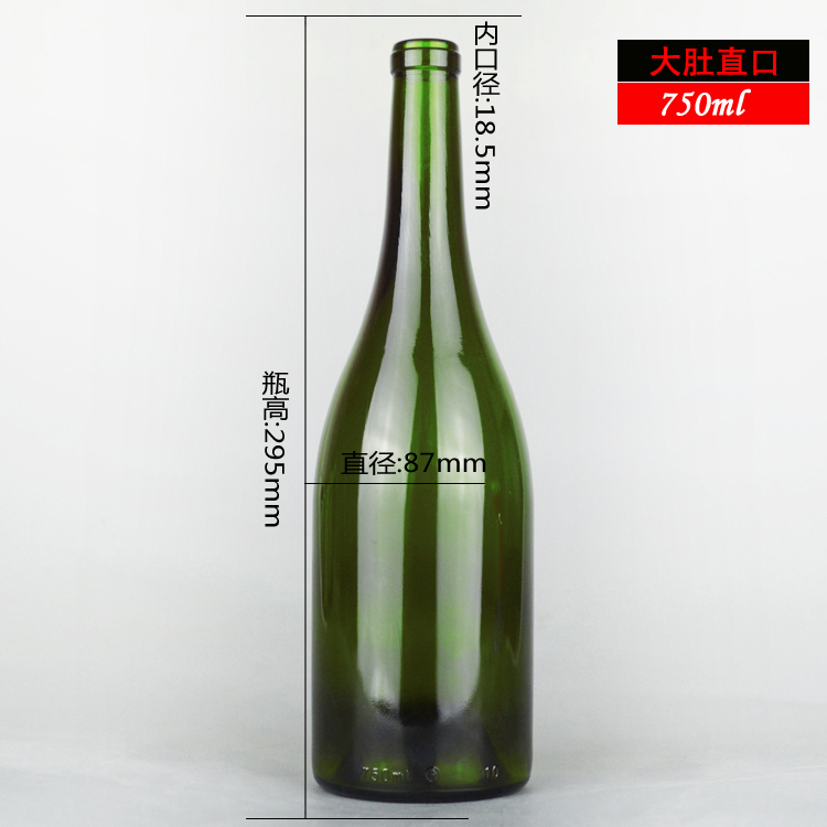 750ml 大肚直口紅酒瓶 葡萄酒玻璃瓶